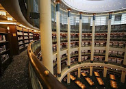 我被带去的下个建筑有点不同。但还是长方形,而且好长,我还是看不到尽头。但它是迄今最大的建筑物。它外围没有大理石柱,只有建筑前面部分有石柱,它外观很像华盛顿(特区)的最高法院,也有一大片台阶通到上方。每个主要部位也都是白色美丽的大理石做的。我进去,里面是座图书馆,30-40 英尺高的书架,摆满各种书籍直到尽头。满屋子是人,坐在不同桌上读着书,人们在交谈,寻找着不同的书,好一座巨型图书馆。